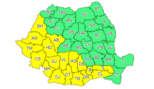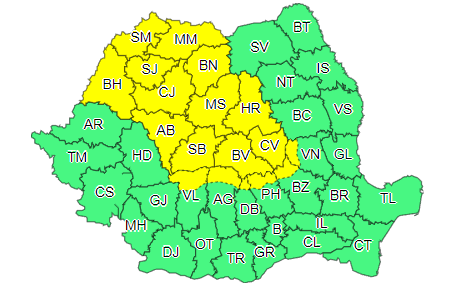 Așadar, primul cod galben este de ploi torențiale, furtuni și grindină și este valabil în intrevalul 12 iulie, ora 15:00 – 13 iulie, ora 06:00.