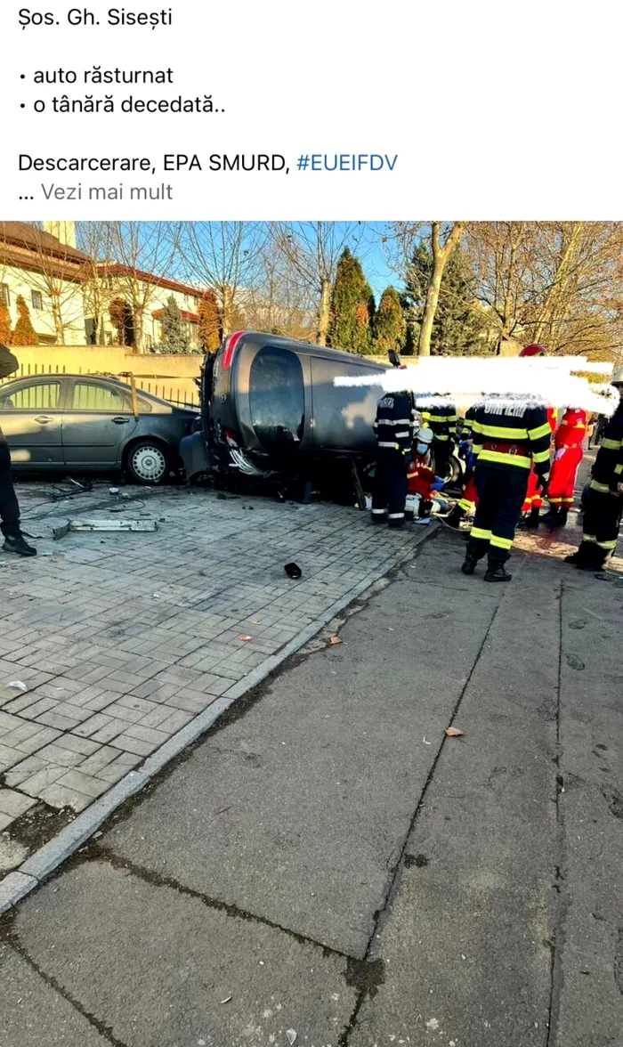 Un tânăr de 18 ani s-a urcat în maşina de lux împreună cu o prietenă cu un an mai mare. Din motive încă neelucidate de ancheta oficială a Poliției, acesta a ieşit de pe drum şi s-a răsturnat peste două autoturisme parcate pe trotuar. Impactul a fost teribil. Prietena care îl însoţea a murit. În zadar s-au chinuit medicii s-o salveze.