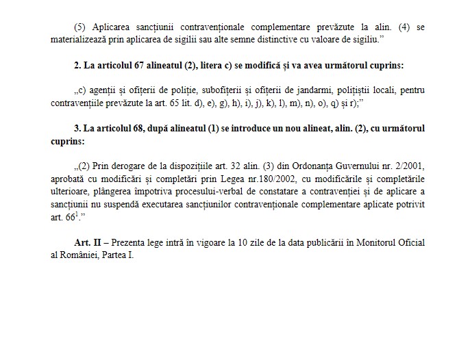 Dacă ar primi undă verde, legea ar intra în vigoare la 10 zile de la publicarea în Monitorul Oficial al României.