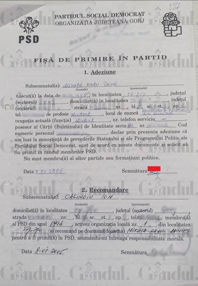 Reacția lui Fifor vine după ce Gândul a prezentat dovezi incontestabile care dărâmă strategia de apărare a USR. În 2005, pe când era student la Electronică, Miruță a semnat „Fișa de Primire în Partid” la PSD Gorj. Deși USR a negat vehement, fostul secretar al PSD Gorj, a declarat pentru Gândul că, în perioada 2011-2012, tatăl lui Miruță l-a adus pe acesta la organizație.