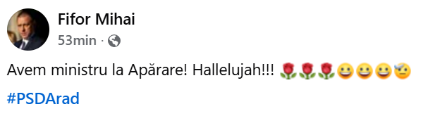 Fostul ministru al Apărării, Mihai Fifor (PSD), a reacționat ironic pe rețelele de socializare în urma documentelor publicate în exclusivitate de Gândul, care atestă faptul că actualul deținător al portofoliului de Apărare, Radu Miruță, a fost membru PSD.