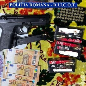 În urma perchezițiilor, au fost descoperite și ridicate 1.288 de pachete cu țigarete de diferite mărci, 118.850 de lei, 9.485 de euro,140 de lire, un dispozitiv de schimbare a plăcuțelor de înmatriculare, precum și un pistol neletal și cartușe.