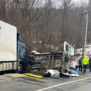 Cinci persoane au fost rănite, joi, într-un accident dintre un camion şi o dubiţă, pe drumul naţional DN 11, în localitatea Oituz, potrivit Inspectoratului pentru Situații de Urgență din Bacău.
