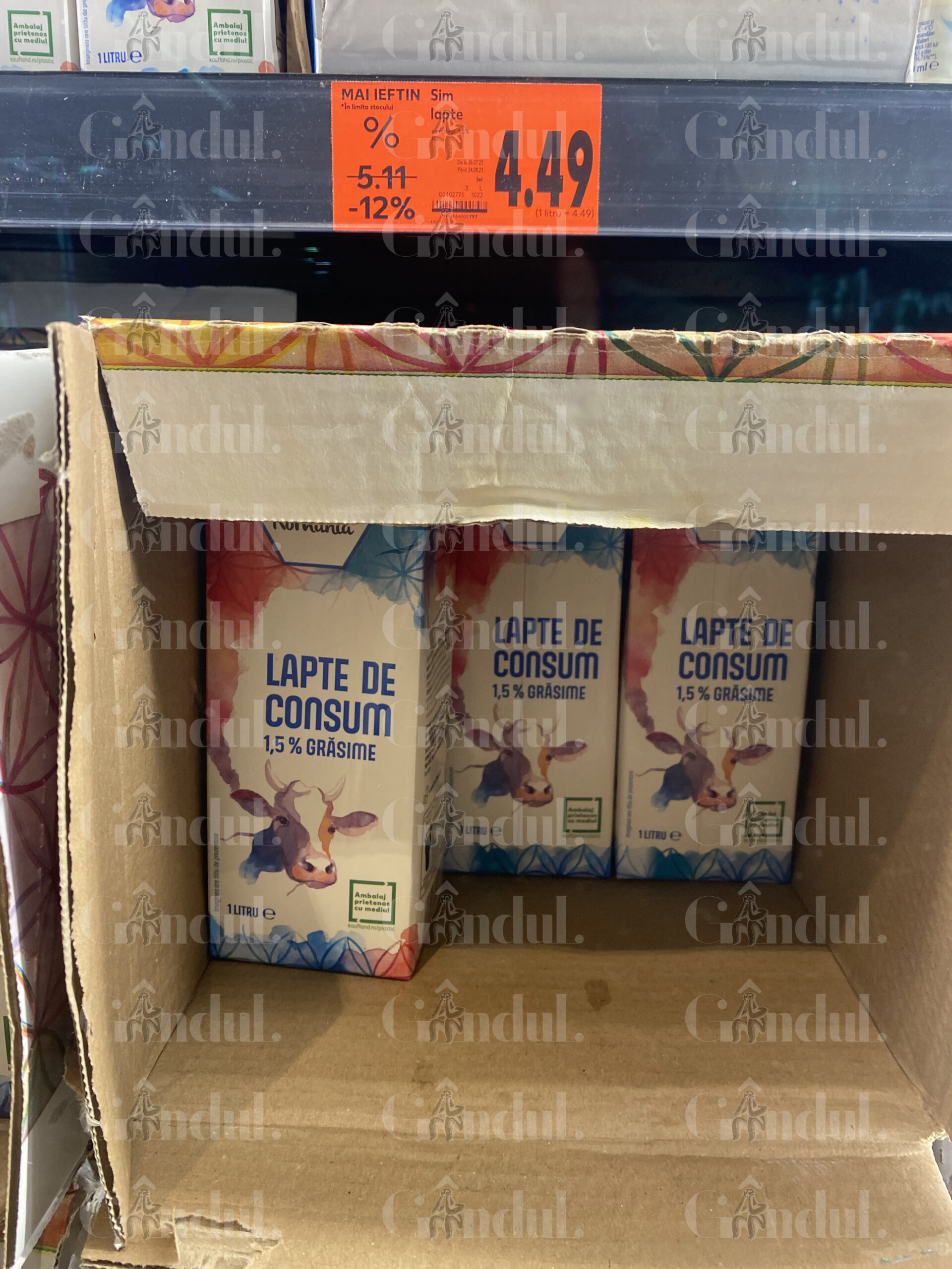 - 1 litru de lapte de vacă de consum cu 1,5% grăsime – 4,49 lei