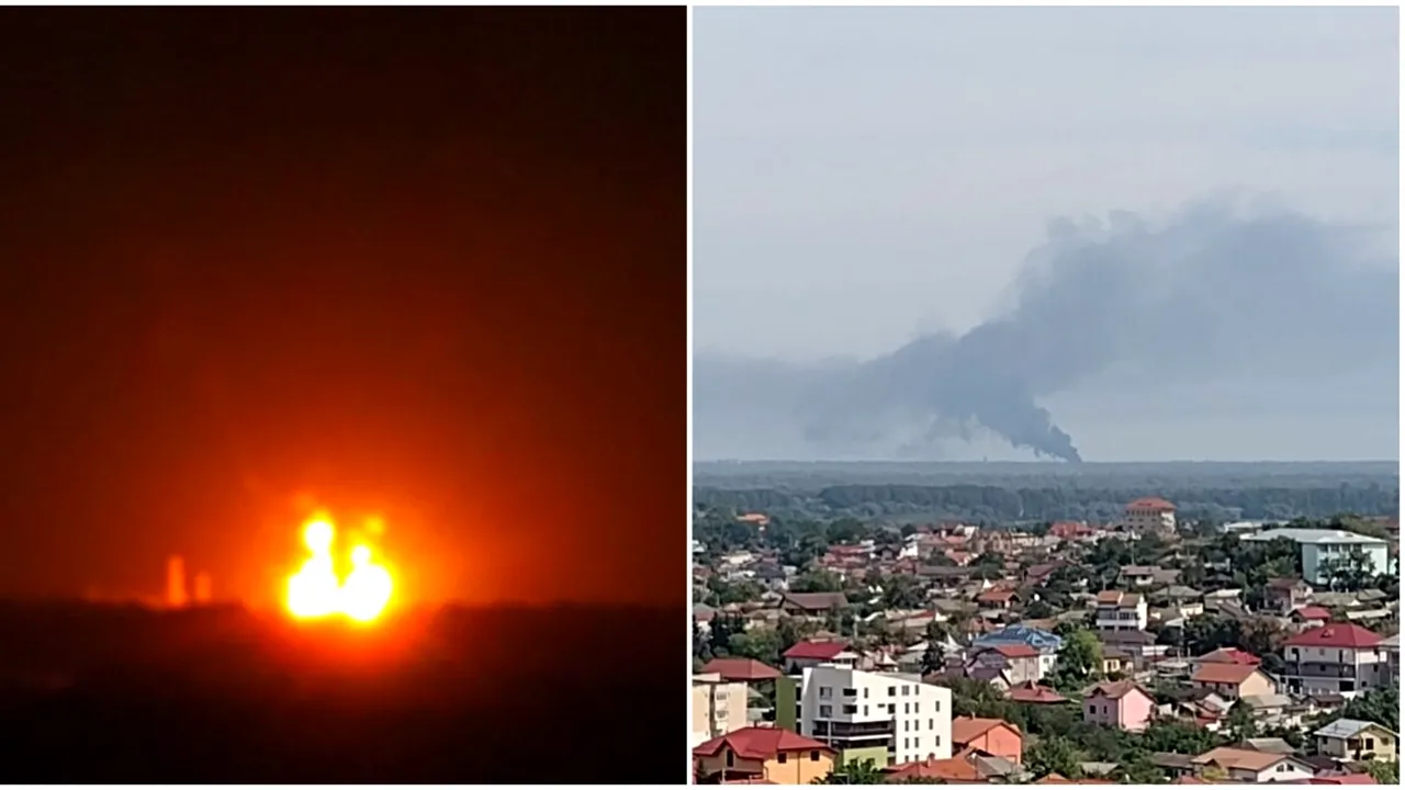 Pe rețelele de socializare au apărut imagini filmate de oamenii din Tulcea, care priveau îngroziți incendiul de după bombardament.