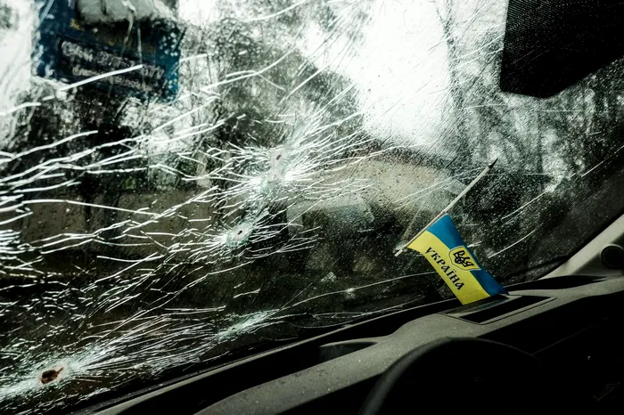 O mașină care a căzut sub focul mitralierelor rusești. Sursă foto: Profimedia