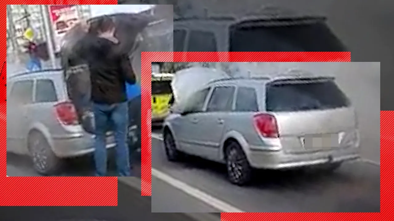 Din bordul mașinii a început să iasă fum, iar șoferul a coborât repede din autoturism. S-a dus la portbagaj și a început să descarce lucrurile pe care le avea acolo.