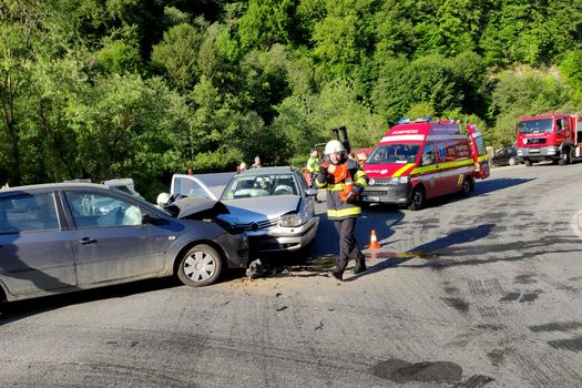 Garda de Intervenție Sângeorz-Băi și două echipaje de la Serviciul de Ambulanță Județean Bistrița-Năsăud intervin în localitatea Ilva Mica la un accident rutier.