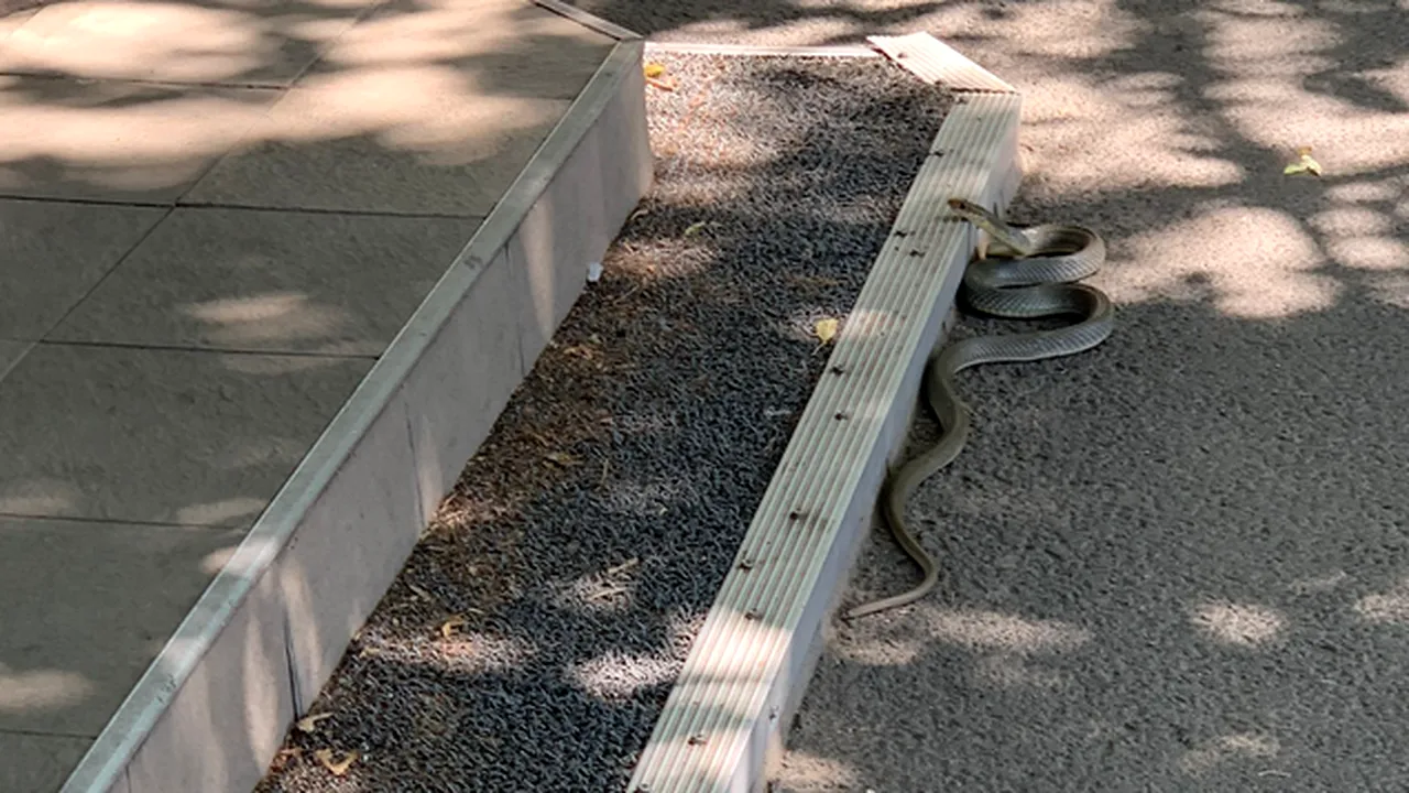 Un șarpe cu o lungime de aproximativ 2 metri a fost văzut, marți, în fața unei farmacii din Galați de lângă Spitalul Județean de Urgență, producând panică printre trecători.