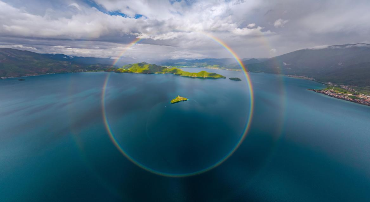 Astfel, în ediția aniversară, a zecea, a competiției Weather Photographer of the Year, fotograful chinez Geshuang Chen, alături de Shuchang Dong, a câștigat marele premiu pentru o imagine inedita ce surprinde un curcubeu complet, perfect circular, deasupra lacului Lugu, în provincia Yunnan din China.