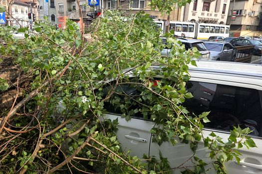 Furtuna extrem de agresivă care s-a manifestat joi după-amiază în București a făcut prăpăd. Zeci de copaci au fost smulși, iar mai multe autoturisme au fost distruse.