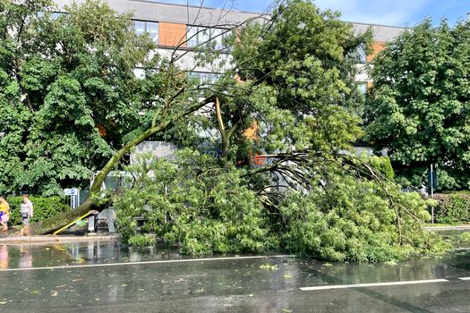Vântul puternic a pus din nou la pământ zeci de copaci din București. Este vorba de arbori care nu au fost toaletați, și care în această perioadă sunt foarte grei, fiind plin de vegetație.