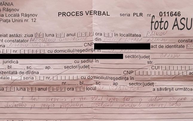 Potrivit Adevărul.ro, acesta a găsit avertismentul Poliției Locale Râșnov, redactat pe numele fratelui său, decedat în urmă cu doi ani.