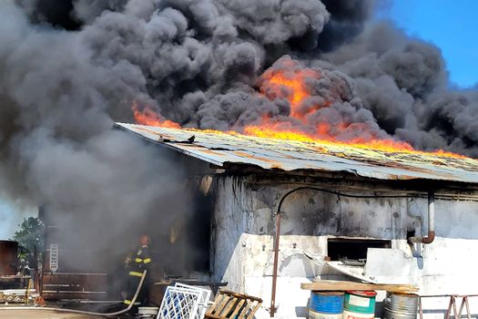 GALERIE FOTO. Incendiu la un depozit de plastice din Giurgiu