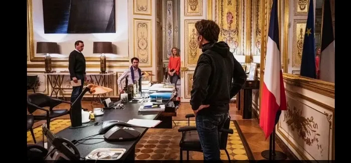 Iată că acum apar imagini și cu Emmanuel Macron, unul dintre cei mai eleganți șefi de stat din UE, care rareori este văzut purtând altceva în afară de costum și care este mereu tuns și bărbierit, în timp ce se află la biroul său din palatul Elysee, purtând un hanorac închis la culoare, blugi și o tunsoare neîngrijită.
