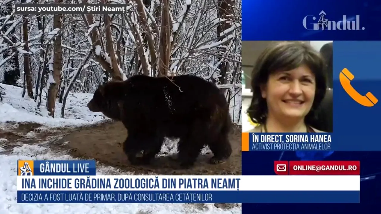 Imaginile cu ursoaica Ina, care se învârtea într-o cușcă imaginară deși se afla în libertate, au avut efect. Grădina Zoologică din Piatra Neamț, acolo unde ursoaica a stat 20 de ani, va fi închisă! Sorina Hanea, activist Protecția Animalelor, a vorbit, la GÂNDUL LIVE, despre traumele animalelor din grădinile zoologice românești.