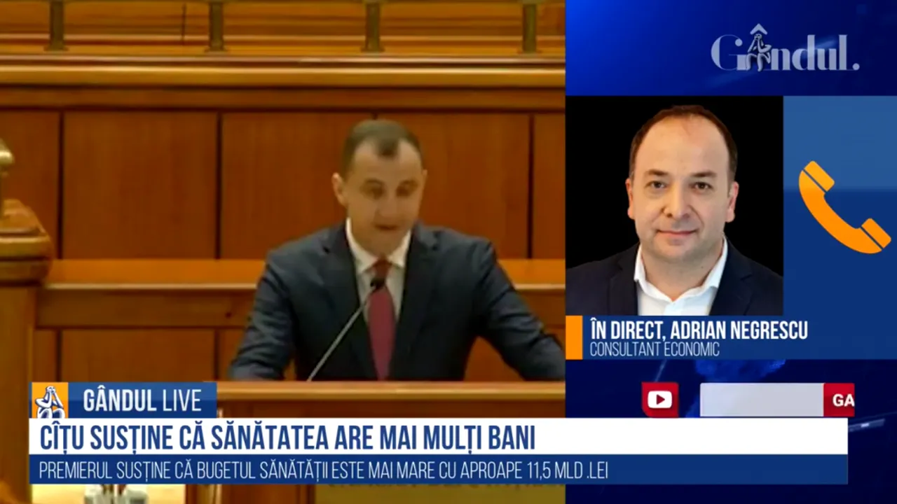 GÂNDUL LIVE. Consultantul financiar Adrian Negrescu: „Bugetul este unul aspirațional. Este greu să acoperi toate cheltuielile. Este o situație dificilă”