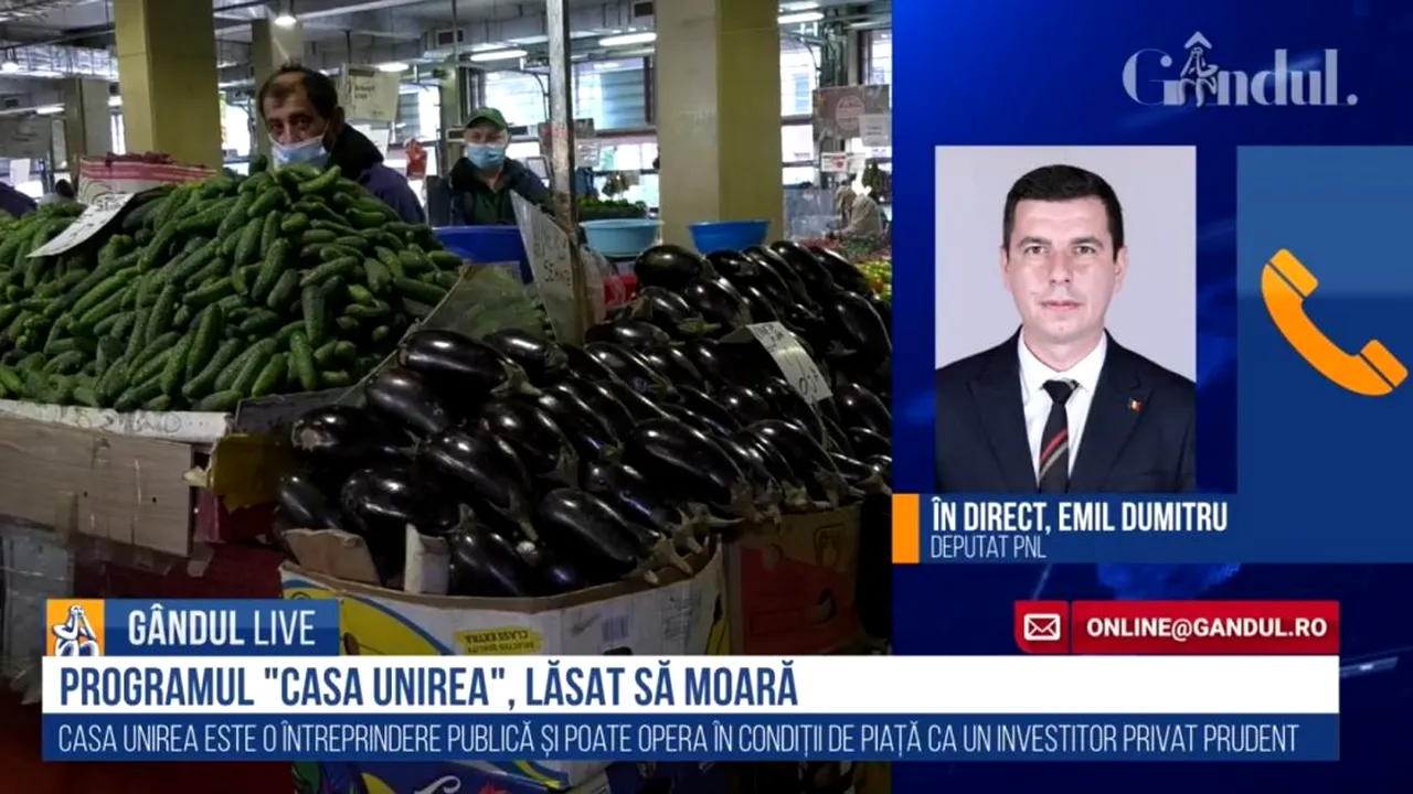 Emil Dumitru, deputat PNL, a vorbit, la GÂNDUL LIVE, despre programul „Casa Unirea”. Acesta reprezintă un proiect investițional de circa 100 milioane de euro, numai că în prezent este lăsat să moară „cu zile” de MADR! La sfârșitul lui 2018, Ministerul Agriculturii a înființat compania de stat „Casa de Comerț Agroalimentar Unirea”, cu scopul de a înființa 80 de magazine, la nivel național, bazate pe legume-fructe, pește și lână. După cum a dezvăluit GÂNDUL.RO (Ministrul Agriculturii spune una și face alta: ”Prin Casa Unirea vrem să demarăm proiectele, să facem investiții” + Memorandum către Guvern pentru desființarea unui program investițional de 100 milioane euro (SURSE), actualul ministru al Agriculturii, Adrian Oros, „una spune și alta face”, spunând că programul trebuie reevaluat și dorind, în același timp, desființarea lui!