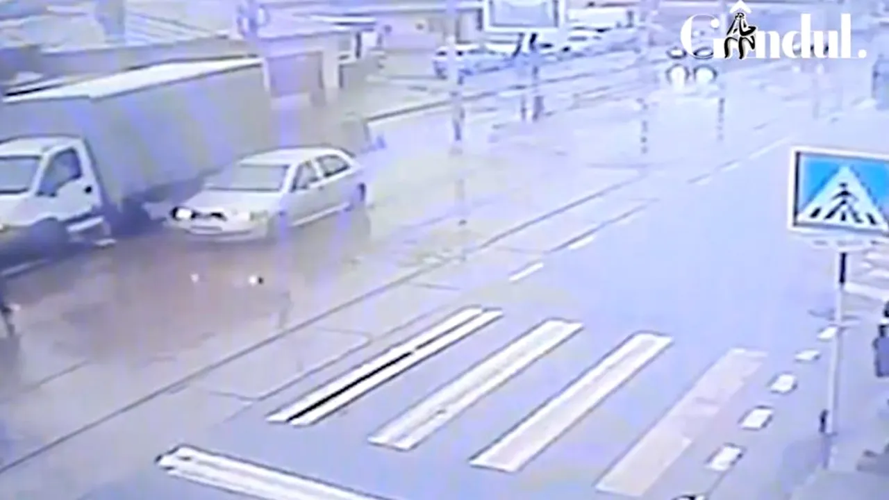 O femeie a fost accidentată pe trecerea de pietoni, pe Calea Giulești, după ce șoferul unei mașini a depășit o dubiță, care îi dăduse acesteia prioritate și a lovit-o din plin.