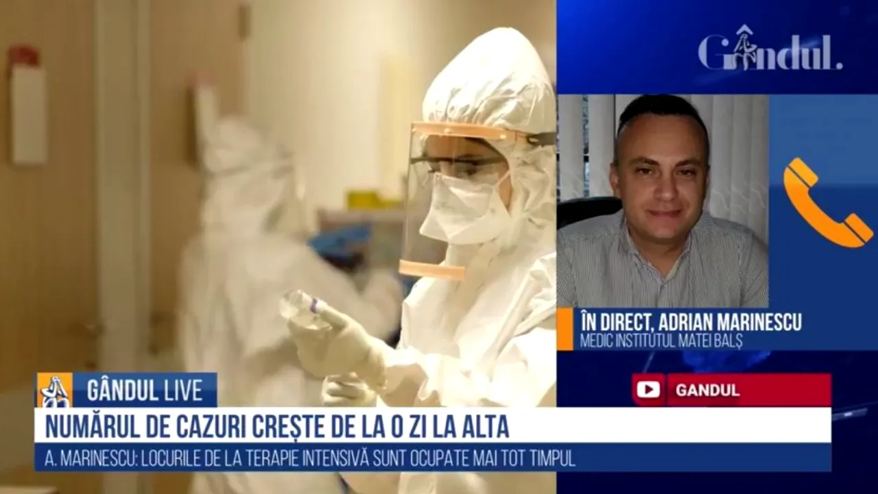GÂNDUL LIVE. Medicul Adrian Marinescu: „Locurile din ATI sunt ocupate tot timpul” / „Nu trebuie să coborâm garda”