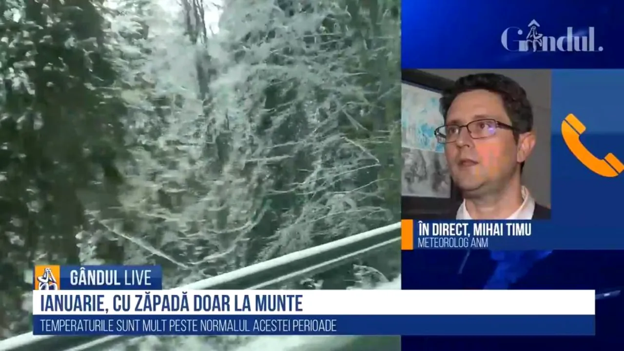 Mihai Timu, meteorolog ANM, a anunțat, la GÂNDUL LIVE, prognoza meteo pentru următoarele zile. Astfel, vremea se va menține neobișnuit de caldă pentru o perioadă de iarnă. Timpul cu adevărat rece ar putea veni după data de 10 ianuarie, explică acesta.