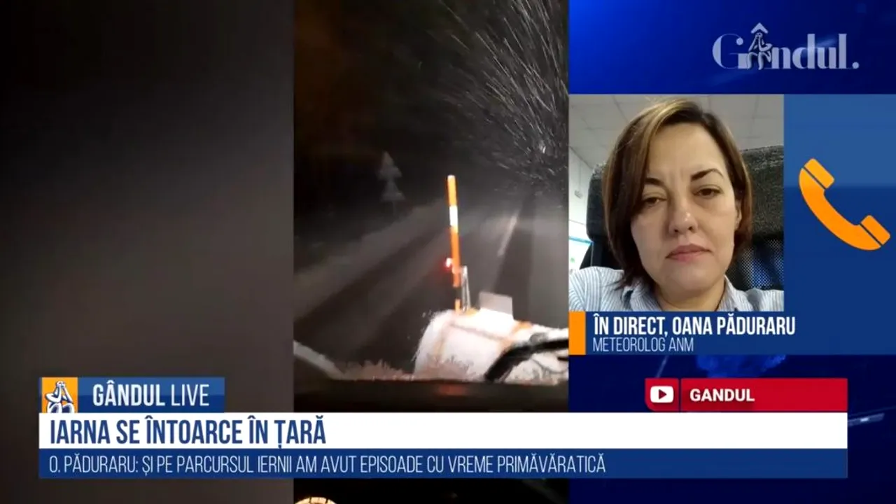 Oana Păduraru, meteorolog ANM, a declarat, la GÂNDUL LIVE, că iarna își reintră în drepturi, dar pentru o perioadă scurtă de timp.
