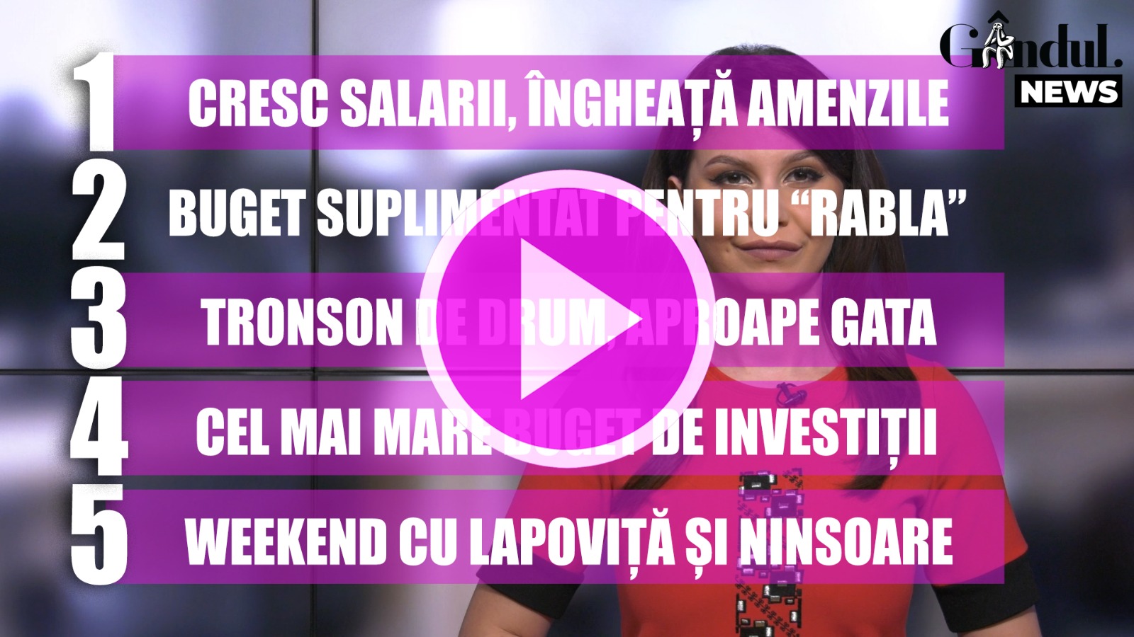 În fiecare zi, de luni până vineri, de la orele 19.00 și 20:30, vezi cele mai importante știri ale zilei, la GÂNDUL NEWS, o emisiune digitală menită să îți aducă în față cele mai importante cinci subiecte ale momentului.