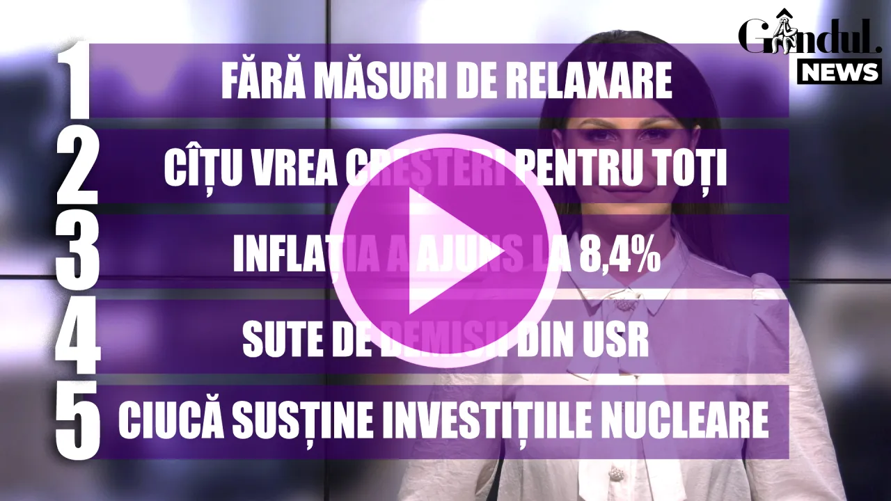 În fiecare zi, de luni până vineri, de la ora 20:30, vezi cele mai importante știri ale zilei, la GÂNDUL NEWS, o emisiune digitală menită să îți aducă în față cele mai interesante cinci subiecte ale momentului.