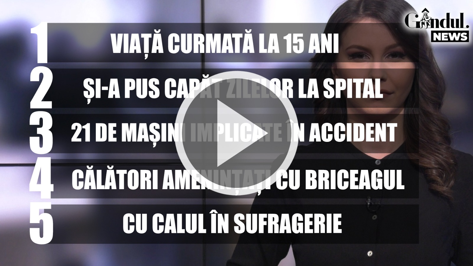 În fiecare zi, de luni până vineri, de la orele 19.00 și 20:30, vezi cele mai importante știri ale zilei, la GÂNDUL NEWS, o emisiune digitală menită să îți aducă în față cele mai interesante cinci subiecte ale momentului.