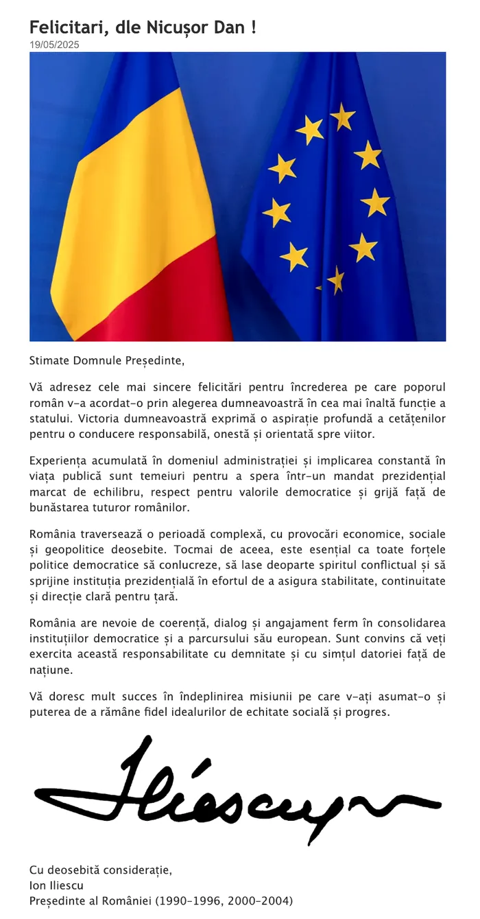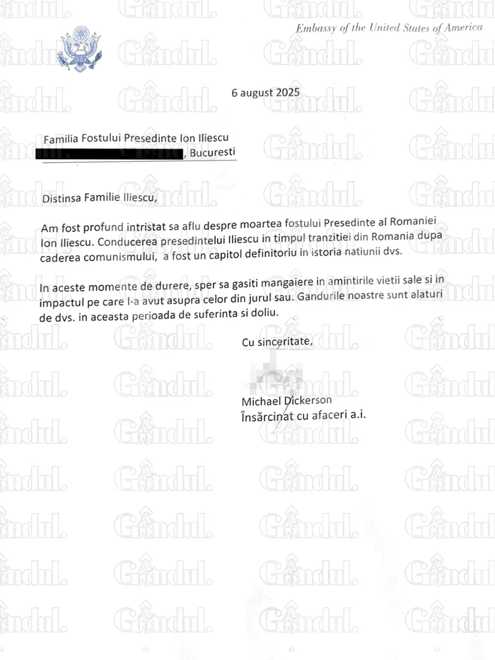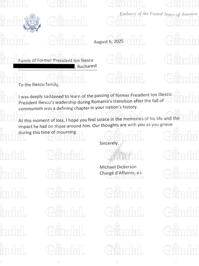 Dacă șeful statului român, Nicușor Dan, n-a dorit să onoreze memoria primului președinte post decembrist al României, au făcut-o americanii. Familia fostului președinte Iliescu a primit destule mesaje, unele sunt publice, altele sunt relatate de agenții internaționale de presă, câteva s-au făcut în privat și în liniște.