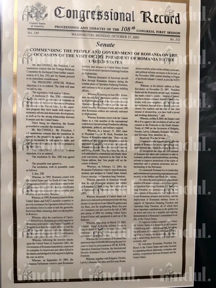 Arhiva personală a familiei Iliescu: Ion Iliescu – Congresul SUA. 27 octombrie 2003.