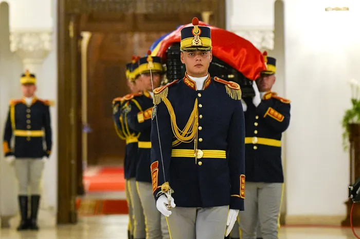 Sicriul cu trupul neinsufletit al fostului presedinte Ion Iliescu este adus in Sala Unirii a Palatului Cotroceni, miercuri, 6 august 2025. ALEXANDRU DOBRE / MEDIAFAX FOTO