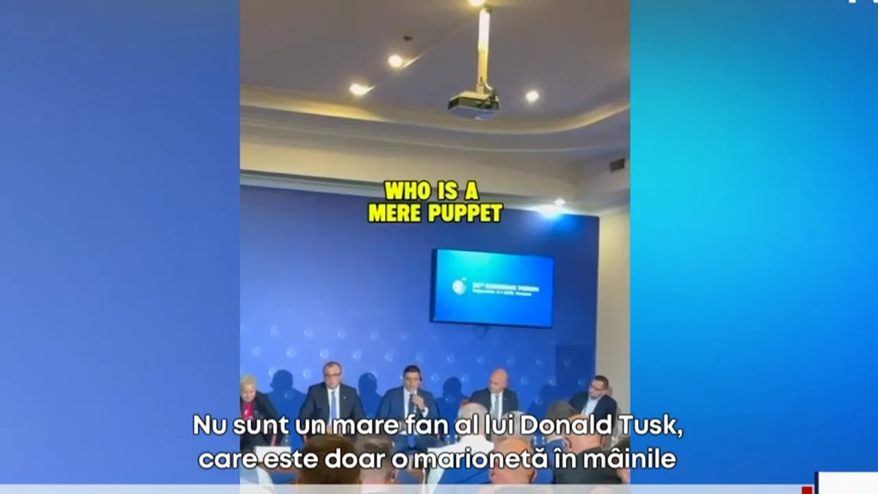 „Nu sunt un mare fan al lui Donald Tusk, care este doar o marionetă în mâinile Ursulei von der Leyen și ale Berlinului. Și consider că prim-ministrul țării dumneavoastră este un servitor al agendei globaliste”.