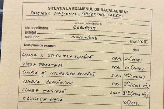 „Originalul îl am aici. Și putem să ne uităm pe el. (…) Pe verso sunt notele pe care le-am obținut la liceu, mediile pe liceu (în dreapta – n.r), și aici (în stânga – n.r.), la probele pe care le-am dat în momentul în care am susținut proba. Eram la un liceu din Craiova pentru că eram în lotul de matematică. Și de asta n-am dat la Făgăraș și am dat la Craiova”, a precizat Dan.