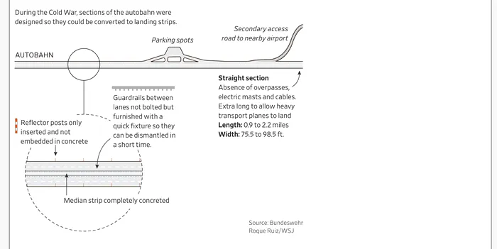 Datele publicate de WSJ arată că Germania are însă o problemă structurală pe infrastructură când vine vorba de astfel de operațiuni. Tunelurile și podurile construite sunt adesea prea înguste sau fragile pentru a găzdui convoaie militare.
