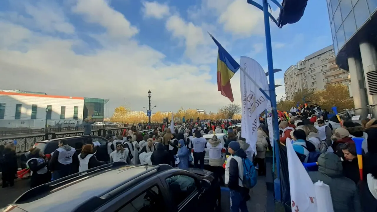 1.000 de membri ai Sindicatul Naţional al Grefei Judiciare Dicasterial au înconjurat clădirea în care funcționează Înalta Curte de Casație și Justiție din București, transmite Blocul Național Sindical.