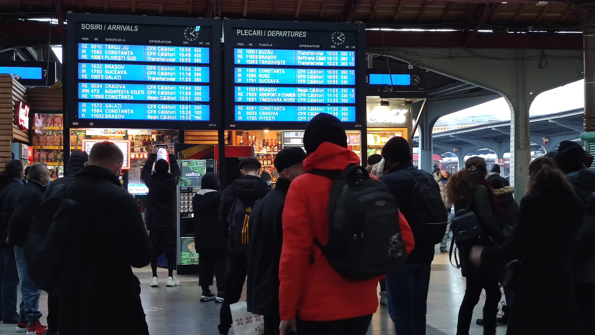 UPDATE: 16:20: La această oră, în Gara de Nord sunt întârzieri chiar și de șapte ore, iar sute de călători stau în frig și nu știu când vor putea pleca către destinațiile lor.