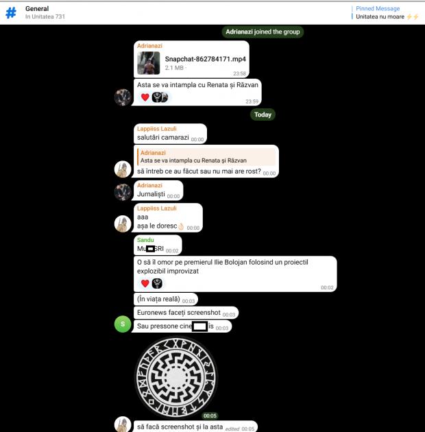 Membrii unei grupări neonaziste – „Unitatea 731” – care promovează pe Telegram, fără scrupule, violența extremă și legionarismul, lansează amenințări cu moartea. Cei vizați sunt Ilie Bolojan, preşedintele interimar al României, și jurnaliştii care au scris despre această grupare.