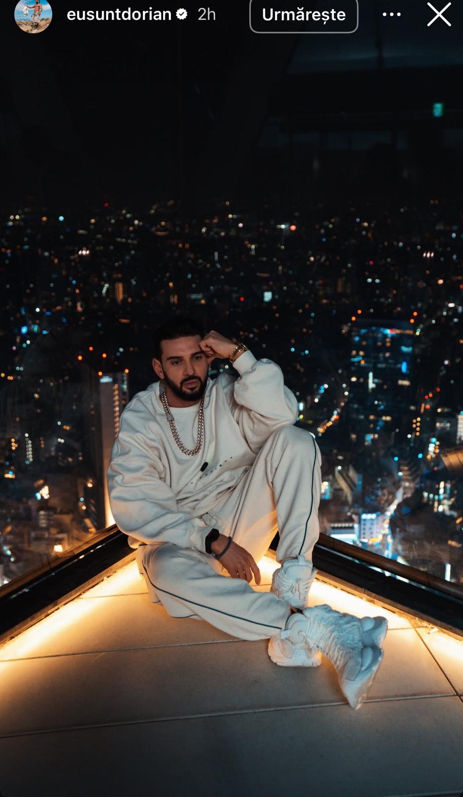 Aflat departe de România, în Japonia, cântărețul a postat pe Instagram-Story o poză în care pare vizibil impactat de decizia instanței. Îmbrăcat într-un trening alb, Dorian Popa s-a fotografiat stând jos, într-un balcon, privind în gol și fără vreun zâmbet pe față. Internauții ar putea crede că artistul a vrut să transmită exact starea în care se află, după aflarea veștii că a fost condamnat la 8 luni de închisoare.