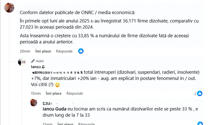 Consilierul onorific pe probleme de economie al premierului, Iancu Guda, ar avea și el, la rândul lui, nevoie de consiliere în domeniu. În ultima sa postare, acesta se bucură că a crescut numărul firmelor înființate în România, în perioada iunie-august 2025. N-a trecut mult și-a aflat și motivul real, de la urmăritorii săi.
