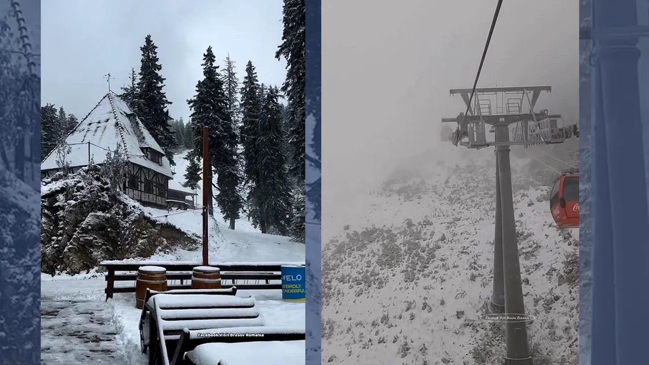 Imaginile cu ninsoarea neașteptată au fost surprinse și publicate pe pagina de Facebook Visit Brașov România.