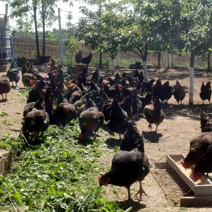 Soții Baltag cresc găini de rasă din anul 2018. Au în ferma lor găini Super Harco (negre, cu guler galben), Negru de Moravia (negre, cu guler portocaliu), Lohman Brown (roșii) și Leghorn (albe). Toate păsările cresc liber. Cerințele pentru a avea o fermă „free range” spun că este nevoie de o suprafață de 0,4 hectare pentru 1.000 de găini.