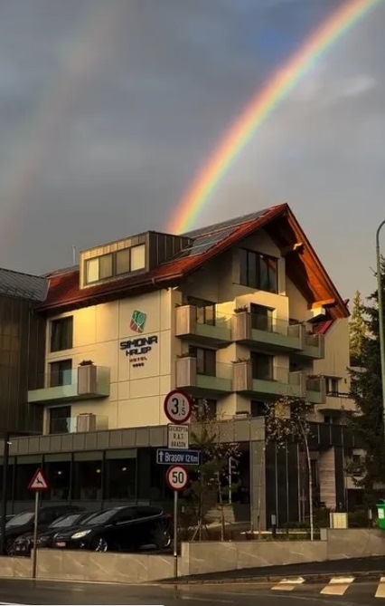 „Un moment simpatic azi. Am primit un superb curcubeu. Un cadou frumos, cât să ne schimbe plăcut ziua”, au transmis angajații hotelului pe pagina oficială, în descrierea imaginilor.
