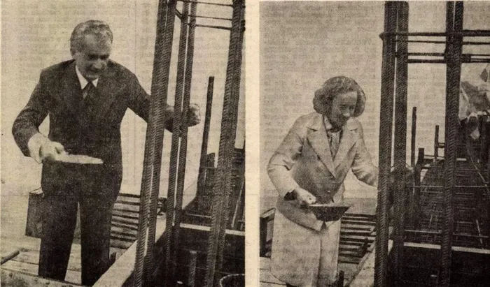 Nicolae Ceaușescu și Elena Ceaușescu, la temelia Casei Poporului. Scânteia. 1984
