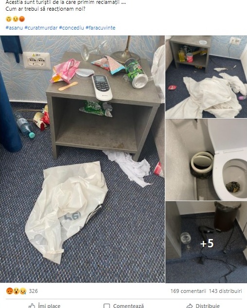Managerul unui hotel de trei stele din Mamaia, nemulţumit de numărul tot mai mare de reclamaţii făcute de turişti, a postat pe pagina de Facebook o serie de imagini cu mizeria pe care aceștia au lăsat-o în urma lor.