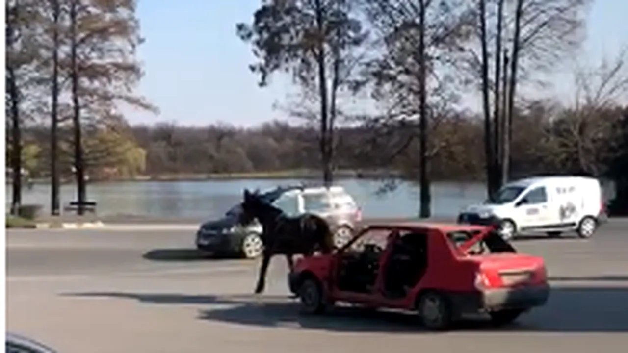 Un tânăr a surprins un cal, care trăgea după el o Dacia Nova