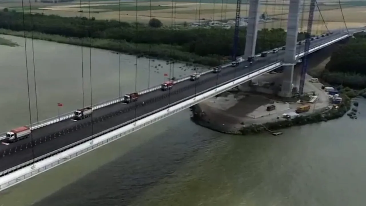 Suprastructura podului suspendat peste Dunăre a fost testată, luni, aceasta fiind una dintre etapele importante înaintea deschiderii oficiale al celui de-al treilea pod suspendat ca dimensiune din Europa. Potrivit declarațiilor oficialilor prezenți, podul va fi, cel mai probabil, dat în folosință la finaluil acestei luni.