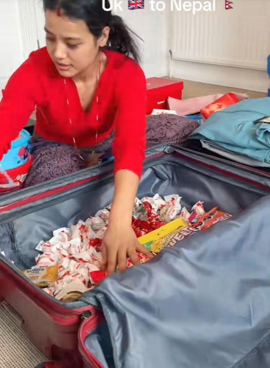 Astfel, tânăra nepaleză a umplut o valiză mare doar cu dulciuri care, pentru cei mai mulți europeni sunt comune, dar la ea acasă, în Nepal, sunt foarte rare.