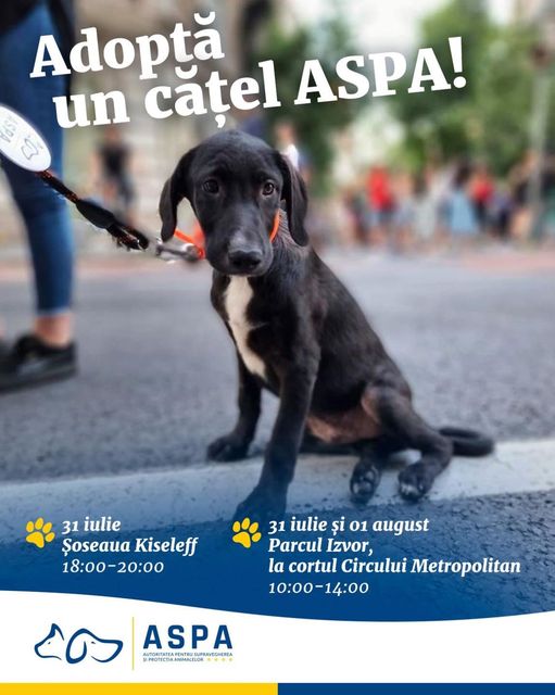 „Adoptă un cățel în Parcul Izvor sau pe șoseaua Kiseleff! Primăria Capitalei, împreună cu Autoritatea pentru Supravegherea și Protecția Animalelor (ASPA), Proedus, Circul Metropolitan și ARCEN, continuă evenimentele dedicate adopției cățeilor din adăposturile ASPA.