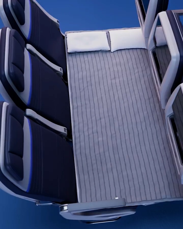 Începând din 2027, pasagerii vor putea rezerva un întreg rând de trei locuri alăturate. Fiecare scaun va avea un suport pentru picioare rabatabil, iar împreună vor forma o suprafață pe care se poate sta întins. Compania va oferi și o saltea subțire, o pătură și două perne, iar pentru familiile cu copii este inclus chiar și un pluș. Evident nu este loc de răsfăț, după cum se vede din imaginile video, dar și chircit ca în personalul de Oltenița este mai bine decât țeapăn.